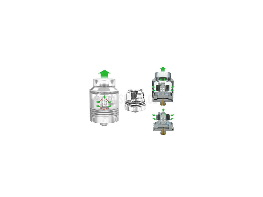 O přímý ofuk spirálek se stará celá řada otvorů na boční konstrukci atomizéru. Díky tomu je vždy zajištěna optimální tvorba páry a vynikající podání chuti.