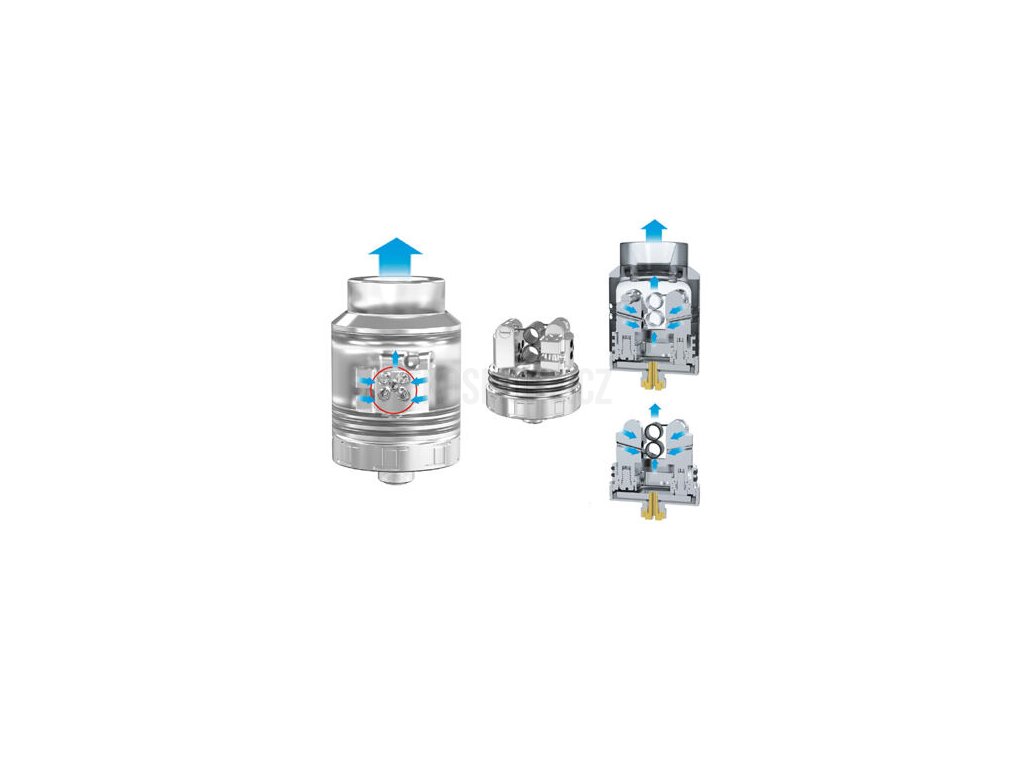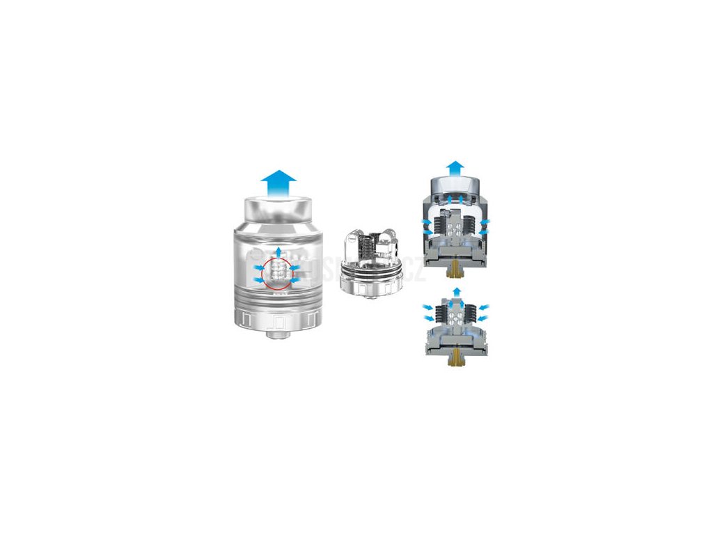 O přímý ofuk spirálek se stará celá řada otvorů na boční konstrukci atomizéru. Díky tomu je vždy zajištěna optimální tvorba páry a vynikající podání chuti.