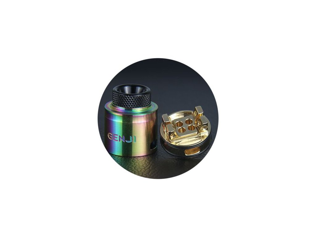 Tigertek Genji je nový RDA atomizér od stejnojmenného výrobce, který přichází s perfektní základnou pro dvě spirálky a vylepšeným systémem airflow pro dosažení maximálního prožitku z produkované chuti. Celá konstrukce je velice jednoduchá, stejně jako u většiny RDA atomizérů. Nemusíte se tedy bát náročné údržby, atomizér se skládá pouze z několika částí. Mezi hlavní součásti patří široký náustek pro zisk chutné páry, zároveň se v základním balení nachází náustek typu 510 s redukcí, můžete si tedy zúžit otvor pro výstup páry do úst, čímž si vychutnáte jemnější chuť, než v případě širokého náustku.