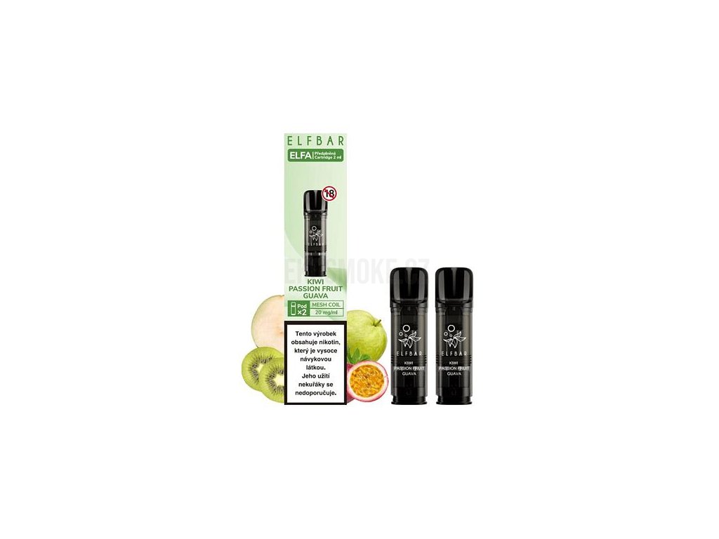Elf Bar ELFA předplněné kapsle (Kiwi Passion Fruit Guava) 2ks intenzita nikotinu 20mg tabáková nálepka Kolek Q