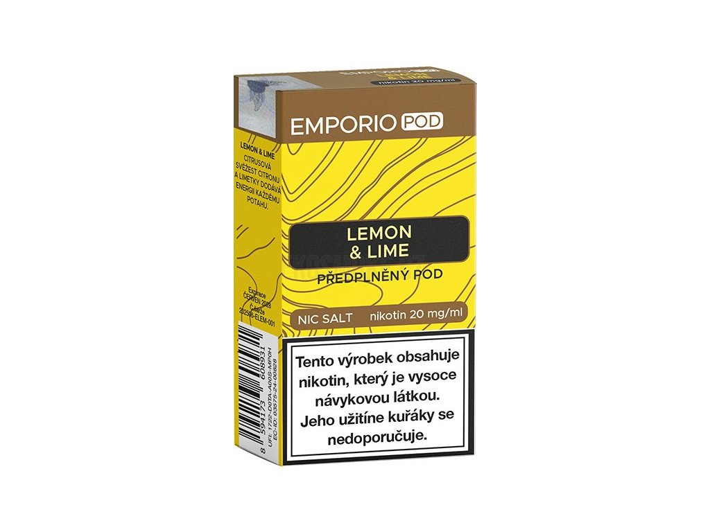 Kyselý twist citrónu a limetky... Předplněné cartridge EMPORIO POD obsahují 2ml SALT liquidu o síle nikotinu 20mg. Poměr 50VG/50PG