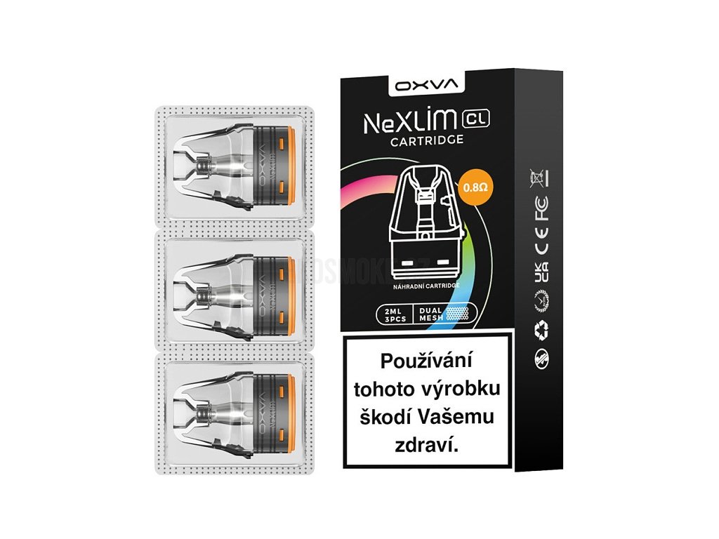 Náhradní Pod Cartridge s vestavěnou žhavící hlavou typu Dual Mesh opatřená dětskou pojistkou (CL) s bočním plněním o celkovém odporu 0,8 ohm, kapacitou 2ml, vhodná pro MTL i RDL styl vapování. Kompatibilní s modely elektronických cigaret Oxva NeXLIM aj. Výrobce: Oxva. Balení 3ks.