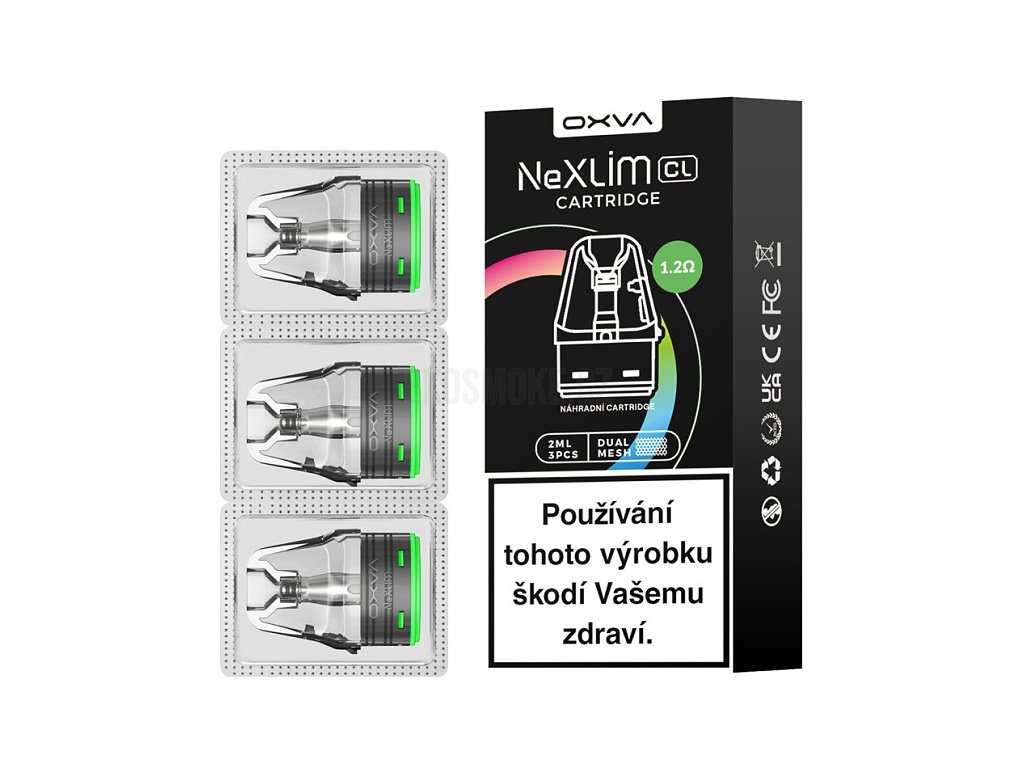 Náhradní Pod Cartridge s vestavěnou žhavící hlavou typu Dual Mesh opatřená dětskou pojistkou (CL) s bočním plněním o celkovém odporu 1,2 ohm, kapacitou 2ml, vhodná pro MTL styl vapování. Kompatibilní s modely elektronických cigaret Oxva NeXLIM aj. Výrobce: Oxva. Balení 3ks.