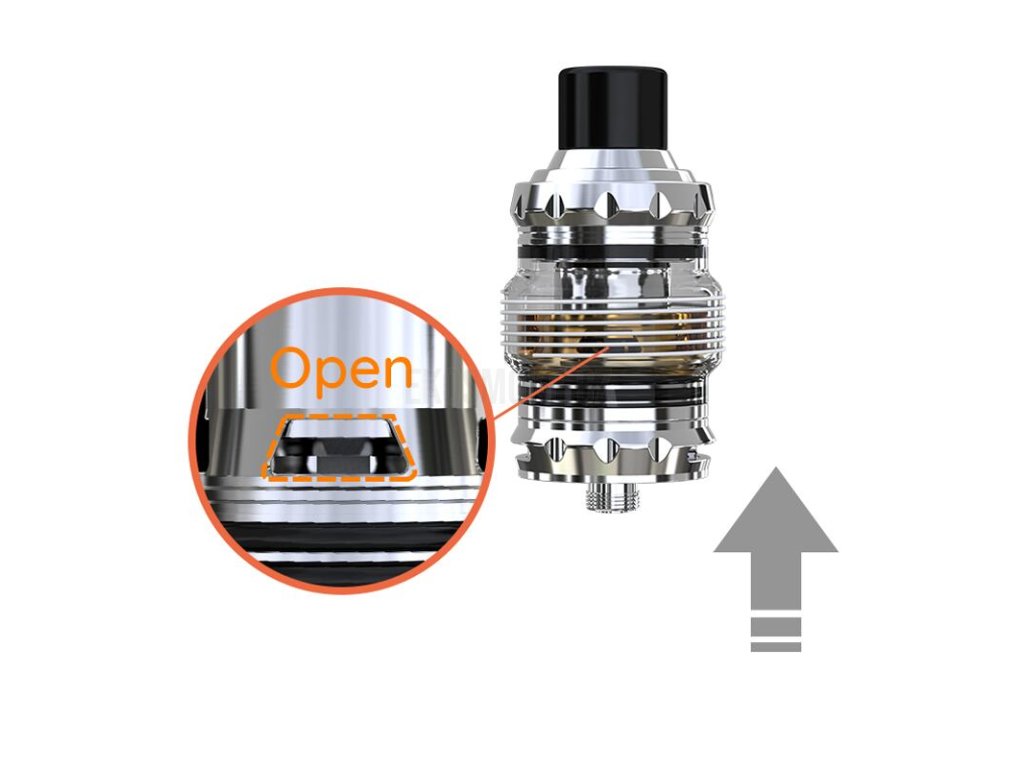 Objem tanku činí 4 ml. Díky této obrovské kapacitě nebudete muset řešit časté doplňování a užijete si dlouhé hodiny pohodového a nerušeného vapování. V případě nutnosti plnění vás potěší přítomnost jednoduchého vrchního systému s dětskou pojistkou. Jemně nadzdvihněte vrchní uzávěr a následně ho vysuňte do strany. Poté už můžete začít plnit e-liquid až do maximální kapacity tanku. Proces zabere jen několik málo vteřin.