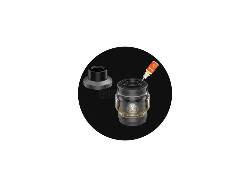 Potřebujete si do atomizéru doplnit e-liquid? Žádný problém. Jednoduchým pohybem pootočte vrchním uzávěrem a odejměte ho. Poté můžete začít plnit do jednoho ze dvou podlouhlých otvorů. Celý tank naplníte během pár vteřin. Díky velkým otvorům pro plnění si poradí i se širšími kapátky, nebo pipetami.