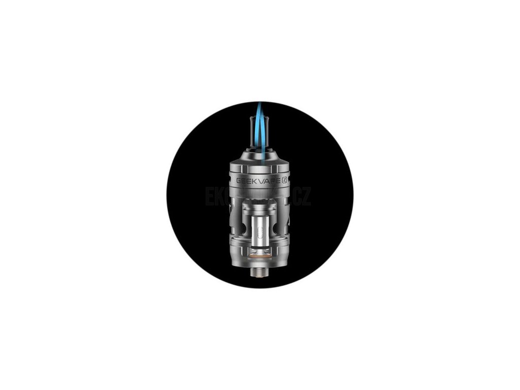 Ve vrchní části se nachází delší náustek pro příjemné MTL šlukování. Výrobce umístil systém přísunu vzduchu rovněž do vrchní části. V té najdete kroužek pro regulaci, jehož otáčením ovlivňujete výslednou tuhost potahu a přizpůsobíte si výsledný potah svým představám. Společně s clearomizérem potom výrobce představuje také novou sérii žhavících tělísek pro MTL s názvem A Series. V základním balení potom najdete tělíska A Series s odpory 0,8 ohm a 1,2 ohm, přičemž tělísko s odporem 0,8 ohm je vhodné pro vzdušnější MTL potah a tělísko 1,2 ohm je možné používat také s nikotinovou solí. GeekVape Z MTL Tank je ve všech směrech povedený clearomizér, který je vhodný zejména pro začátečníky a nenáročné uživatele, kteří hledají funkční clearomizér se snadnou obsluhou a údržbou.