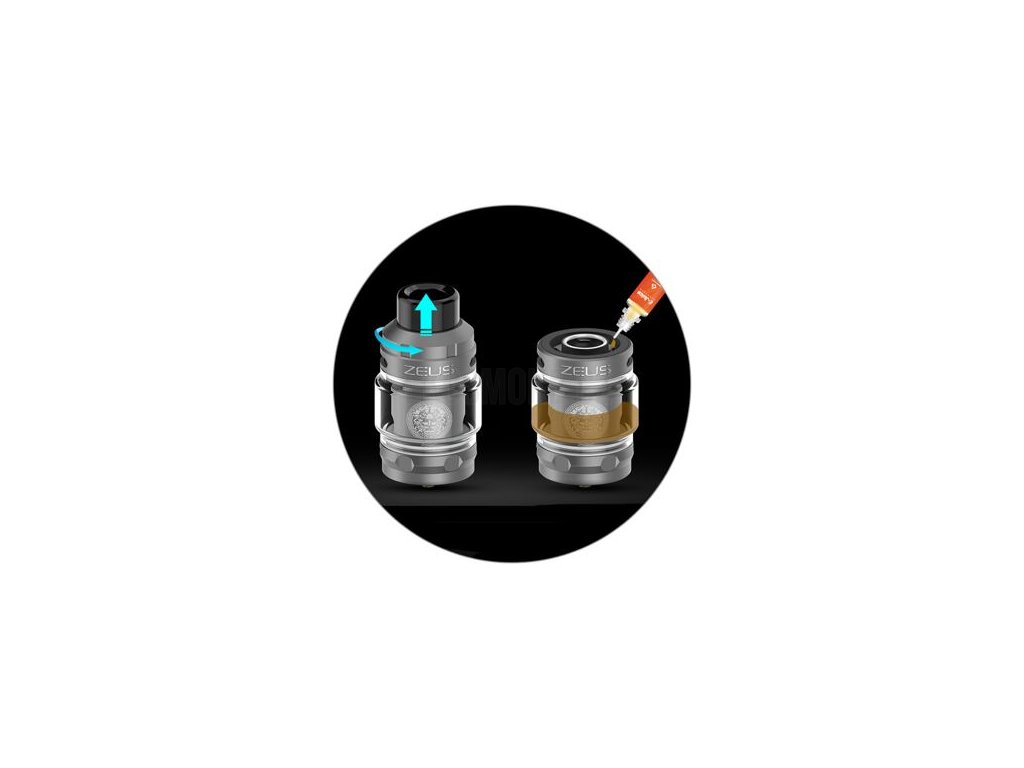 Samotný tank nabídne díky přítomnosti vybouleného skla velký objem. Ten činí v základní verzi až 5 ml. Do atomizéru tak dostanete skutečně velké množství e-liquidu. Zároveň takto velký tank zajistí dlouhé hodiny nerušeného vapování bez nutnosti dalšího plnění. V základním balení se potom nachází také standardní pyrexové tělo, po jehož osazení získáte objem 3,5 ml. Pokud vám však e-liquid v tanku přeci jen dojde, rozhodně nezoufejte. Atomizér je vybaven jednoduchým systémem vrchního plnění. Pouze pootočíte vrchním uzávěrem a tento uzávěr následně odejmete. Poté už můžete začít plnit. Do plné kapacity doplníte během několika vteřin. Jednou z hlavních výsad atomizéru Zeus Subohm je potom přítomnost vrchního systému airflow, který eliminuje možné vyprskávání a protékání e-liquidu spodními airflow otvory. Díky umístění airflow systému ve vrchní části získáte také věrnější podání chuti na základě efektivnější cirkulace vzduchu uvnitř atomizéru.
