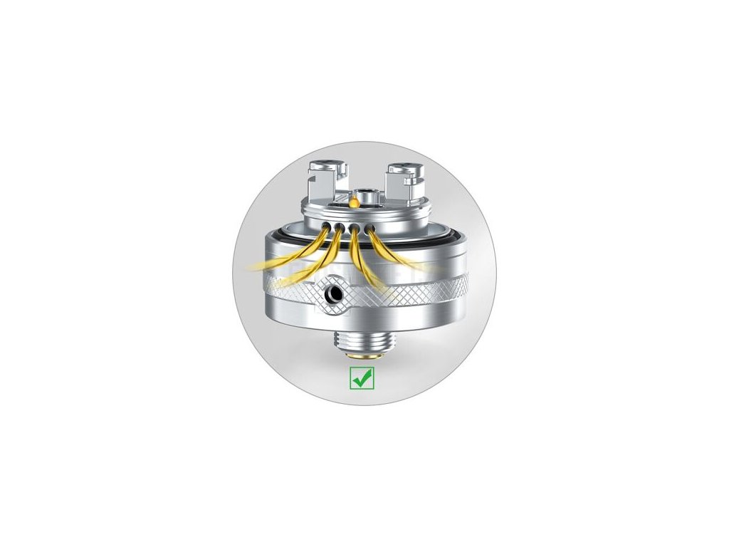 Propracovaný a intuitivní systém proudění vzduchu je jedním z klíčových prvků celého atomizéru. Na těle se nachází celkem čtyři nezávislé a individuální otvory pro přívod vzduchu s průměry 0,8 mm, 1,2 mm, 1,4 mm a 1,6 mm. Prostým otáčením kroužku pro regulaci airflow si tak zvolíte požadovaný průměr vzduchového otvoru a můžete si vychutnat tuhost potahu přesně podle svých představ.