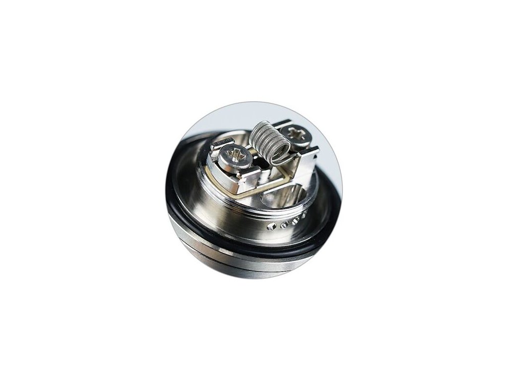 Krásné dílenské zpracování a kvalitní kovová konstrukce nejsou jedinými hlavními výsadami celého atomizéru. Mimo precizně navržený design myslel výrobce také na bezpečnost, z toho důvodu osadil vrchní i spodní část atomizéru vystouplým kovovým kroužkem, který lépe chrání atomizér proti případnému pádu.