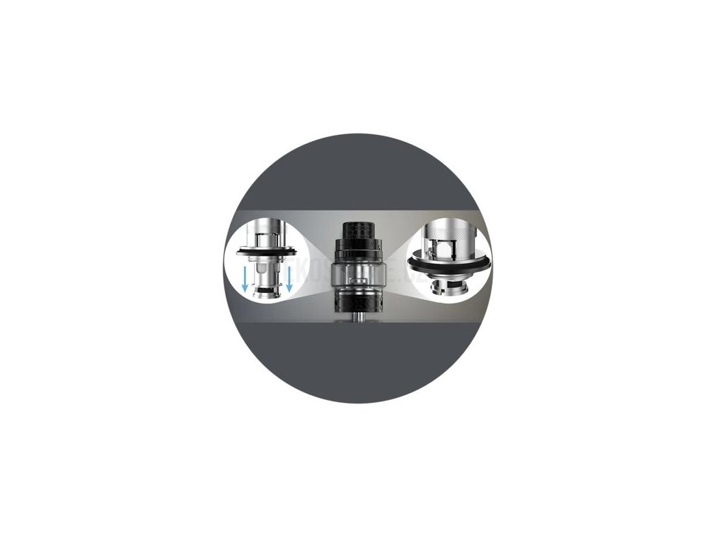 Nespornou výhodou atomizéru Z Force Tank je přítomnost inovativního uzavíratelného mechanismu, který uzavře přísun e-liquidu v případě výměny žhavícího tělíska. Během výměny tak můžete jednoduše ponechat naplněný tank a po vysunutí tělíska se uzavře příchod juice flow. Poté jednoduše nacvaknete novou hlavu do atomizéru a můžete opět začít vapovat.