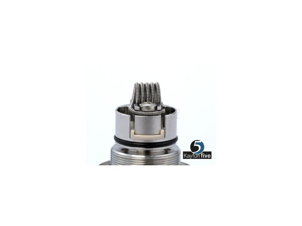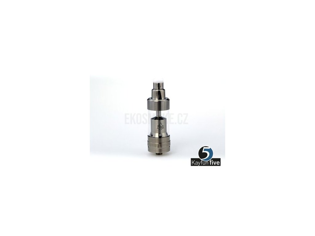 Kayfun 5 je vyroben z vysoce kvalitní nerezové oceli kombinované s tankem z pyrexového skla (objem 4ml) nebo nerezu (objem 5ml). Průměr clearomizéru je 22mm, pasuje tedy perfektně na většinu modů na trhu. V jeho horní části naleznete 510 drip tip, který si můžete vyměnit za vlastní, poté horní plnění a ve spodní části regulaci airflow. Unikání je zde systém nastavování přísunu e-liquidu, který je naprosto plynulý a tak lze používat jak velmi řídké, tak i husté liquidy. Kayfun 5 lze také používat pro přímé potahování do plic při plně otevřeném airflow.