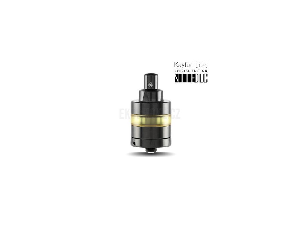 Oblíbený clearomizér Kayfun Lite si budete moci nově pořídit také v luxusní Nite DLC edici. Zkratka DLC se používá pro techniku zpracování povrchu zvanou Diamond-like Carbon. Tato speciální technika si přivlastňuje podobné vlastnosti, jako má diamant, tedy obrovskou pevnost a zvýšenou odolnost vůči poškrábání a dalším vnějším vlivům. Clearomizér Kayfun Lite Nite DLC je vyroben z vysoce kvalitní nerezové oceli a je rovněž plně biokompatibilní, nevyvolává tedy jakékoliv dráždivé reakce v těle. Speciální verze tohoto atomizéru pro klasické šlukování je určena těm nejnáročnějším uživatelům, kteří očekávají nekompromisní kvalitu.
