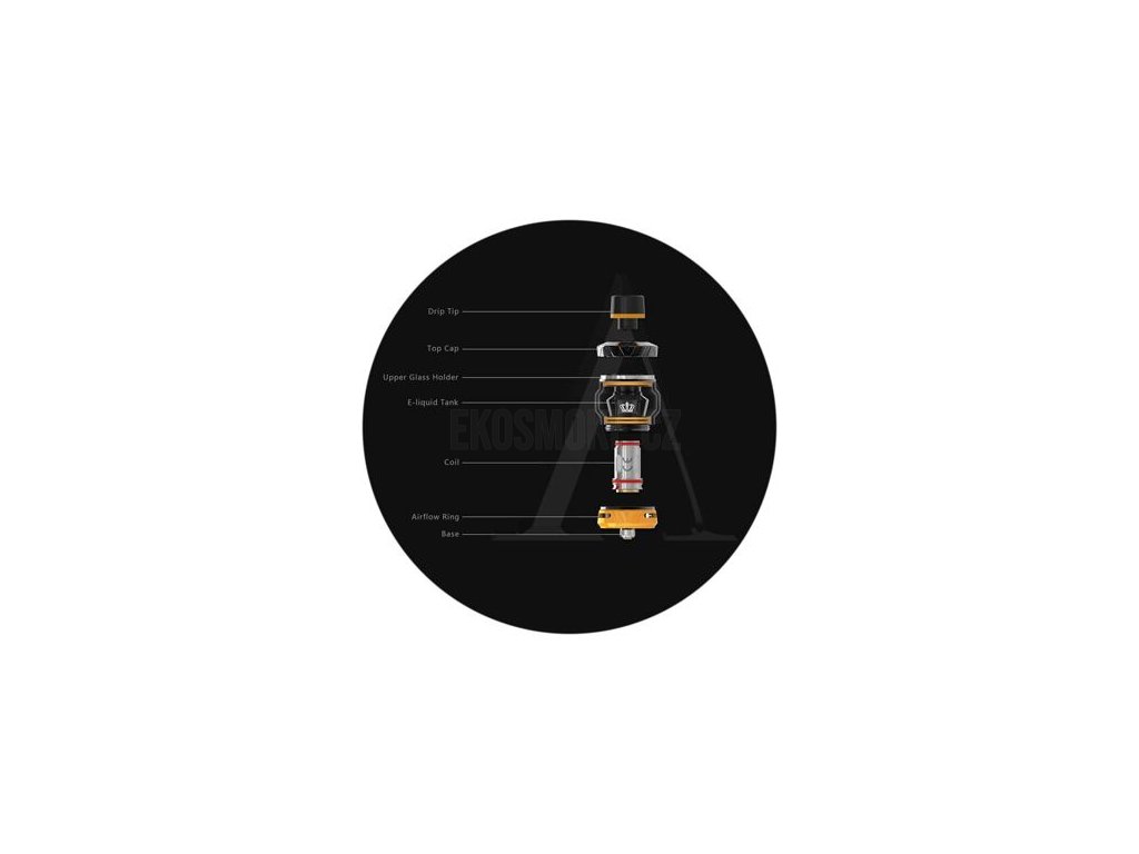 Uwell Crown V Tank je novým korunovaným králem na poli DL atomizérů na standardní žhavící hlavy. A právě designem tradiční královské koruny byl inspirován také samotný design atomizéru. Ten nabídne elegantní zpracování, kvalitní použité materiály a robustní konstrukci s délkou 51 mm a průměrem 29 mm. Královskou korunou je ozdobená také vnitřní komora. S tímhle atomizérem zaručeně vždy vyniknete.
