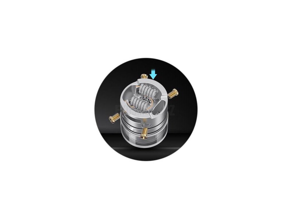 Ve vrchní části se přímo pod top capem nachází inovativní základna pro usazení dvou spirálek. Umožňuje snadnou a rychlou instalaci díky bočnímu dotažení šroubků, osazení hravě zvládnete během několika málo minut. Základna navíc disponuje dostatkem prostoru pro umístění i větších spirálek a většího množství vaty. Novinkou je potom systém airflow s umístěním ve vrchní části u základny. Díky tomu je zajištěno plynulé proudění vzduchu přímo ke spirálkám a ofuk obou spirálek v co nejkratší dráze, výsledná chuť páry je proto doslova ohromující. O jemnost páry se postará také celá řada menších otvorů pro výstup vzduchu přímo v základně. Atomizér si dokáže perfektně poradit jak se složitějšími mixy, tak také s jednosložkovými e-liquidy. Vandy Vape Pyro V4 RDTA je hrdým nástupcem předchozí generace a opět ukazuje, v čem tolik vyniká hardware výrobce Vandy Vape.
