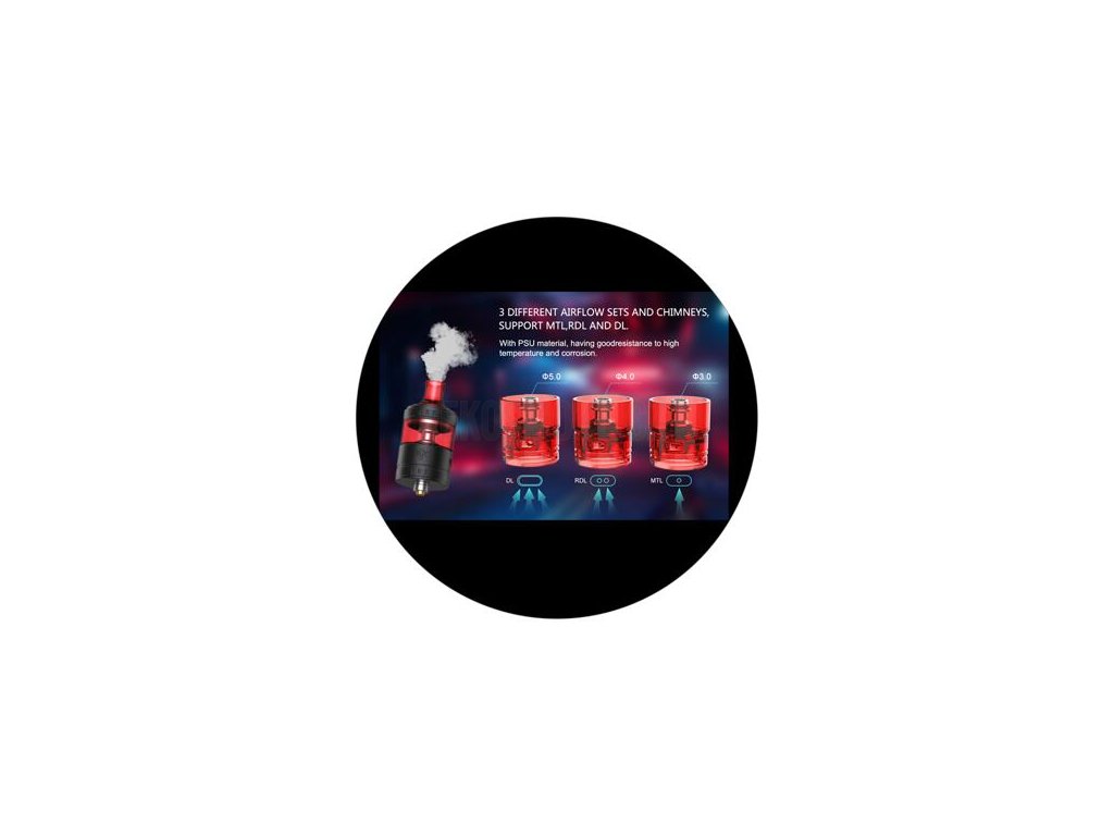 Všechny formy vapingu v jednom jediném těle. To nabízí Vandy Vape Requiem RTA. Součástí balení jsou tři komory s rozdílnými vzduchovými otvory a odlišnými průměry středového komínu pro možnost využití hned na tři různé formy vapování, tedy na MTL, DL a RDL vaping. Pro DL je připravena komora se širokým airflow a středovým komínem 5 mm, pro MTL je určena komora s úzkým průměrem airflow a průměrem komínu 3 mm a pro RDL vaping se můžete těšit na dva menší airflow otvory a průměr 4 mm.