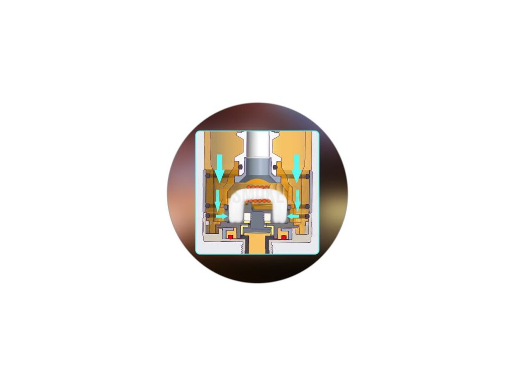 Spodní část atomizéru ukrývá praktickou základnu se dvěma protilehlými sloupky, do které je možné nainstalovat jednu spirálku dle vlastního výběru. Atomizér si poradí s drtivou většinou spirálek, nabídne snadné uchycení pomocí dvou šroubků a pohodlnou instalaci, se kterou si budou rozumět také začátečníci. Celý atomizér potom zvládnete osadit za pár minut.