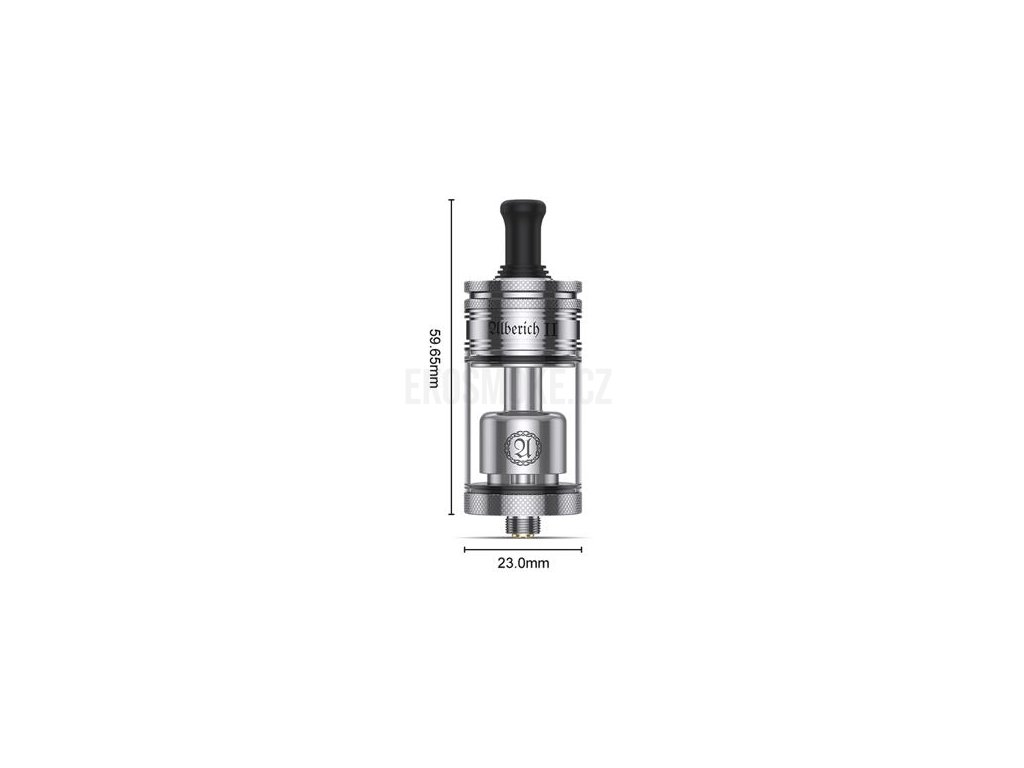Vapefly Alberich II MTL RTA pokračuje v tradici krásně zpracovaných atomizérů výrobce Vapefly. Opět přináší bytelnou a stylově zpracovanou kovovou konstrukci s minimalistickými prvky, díky čemuž si bude esteticky rozumět s drtivou většinou modů a baterií. Samozřejmostí jsou také kompaktní rozměry, které činí jen 59.65 x 23 mm. Díky závitu 510 atomizér velice snadno ukotvíte na svůj oblíbený mod a můžete se pustit do vapování.