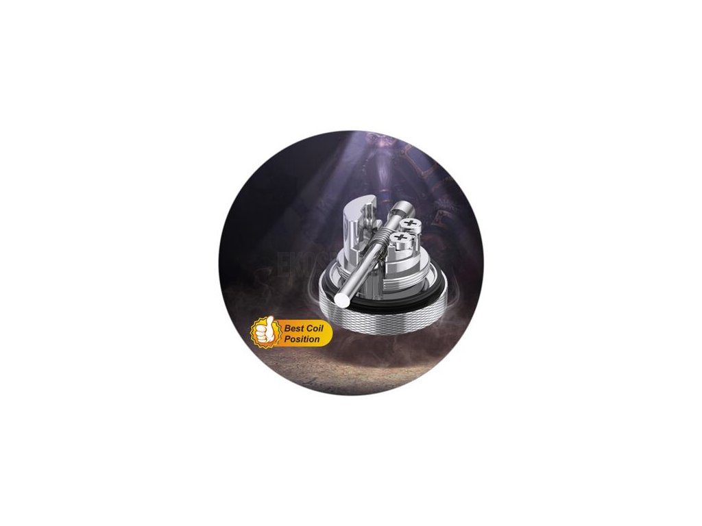 V těle atomizéru se nachází praktická základna s jedním sloupkem pro usazení spirálky dle vlastního výběru. Spirálku jednoduše dotáhnete pomocí dvou křížových šroubků. Vyrovnání a celková instalace spirálky potom zabere pouhých pár vteřin, poté se již můžete naplno věnovat potahování.