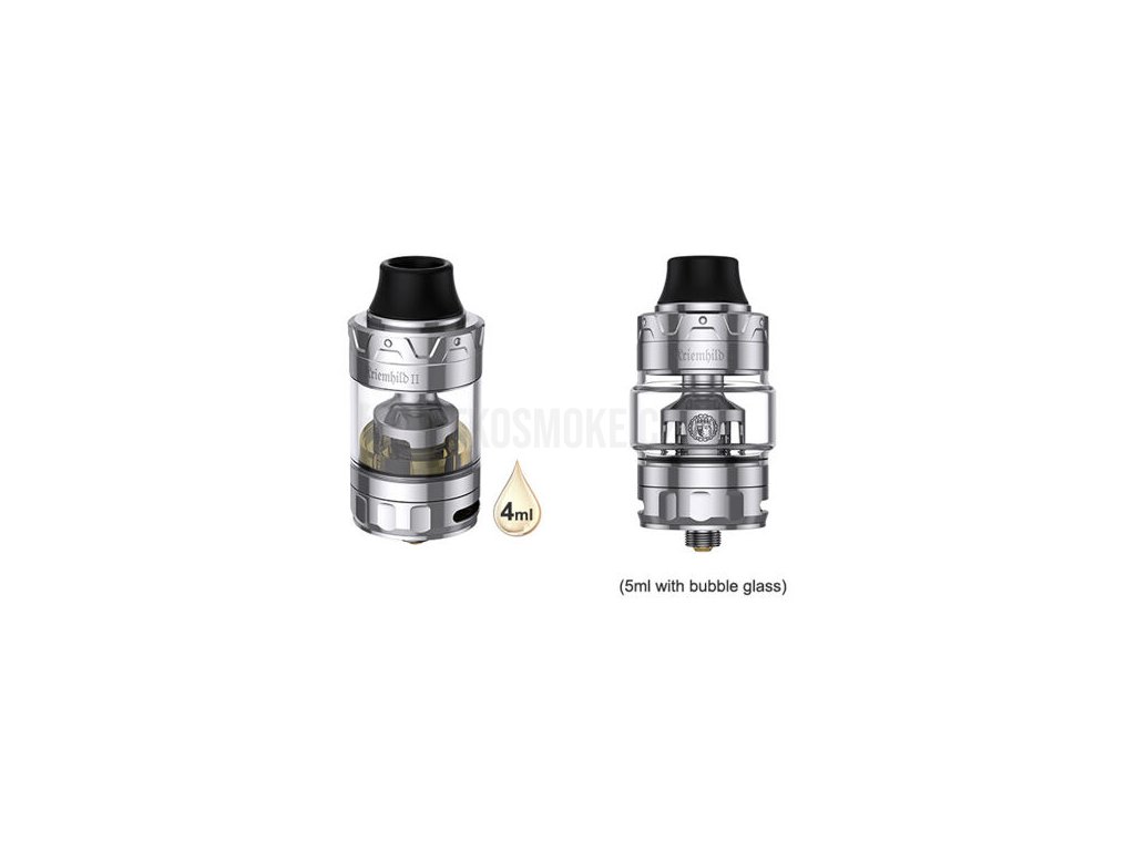 Kriemhild II Sub Ohm Tank od výrobce Vapefly je nízkoodporový clearomizér na tovární žhavící hlavy vhodný pro přímé potahování do plic. Láká na stylové designové zpracování, velký objem tanku a zbrusu nové žhavící hlavy s mesh pletivem pro zisk velkého množství páry a prvotřídní chuť. Délka atomizéru činí jen 51,2 mm. Průměr se zastavil na 25 mm. Kompatibilitu s většinou modů na trhu zajišťuje závit typu 510 ve spodní části. Vrchní část je opatřena náustkem s uchycením typu 810, v balení najdete také adaptér pro použití náustku s uchycením 510. Objem tanku činí 4 ml, přičemž tuto kapacitu pohodlně navýšíte až na 5 ml osazením vybouleného pyrexového skla z balení. Samozřejmostí je potom intuitivní bajonetové vrchní plnění pro co nejsnazší obsluhu.