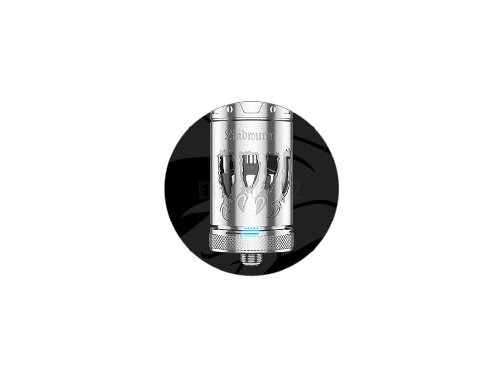 Clearomizér Vapefly Lindwurm je nádherně zpracovaný motací atomizér s laserovým gravírováním a zvýšenou odolností vůči korozi s bytelnou kovovou konstrukcí. Za jeho zpracováním stojí výrobce Vapefly ve spojení s vaperským týmem German 103, z této spolupráce už vzešla například populární série Brunhilde. Clearomizér Vapefly Lindwurm RTA je určen pro přímé potahování do plic, nabídne však zajímavou variaci airflow, v balení se totiž nachází vzduchové vložky známé právě ze série Brunhilde, díky tomu budete mít na výběr z většího množství možností využití vzduchového otvoru pro zisk utaženějšího a jemnějšího DL potahu, na výběr máte vzduchové vložky s průměry otvoru 0,9 mm, 1,2 mm, 1,4 mm, 1,8 mm, 2,1 mm a 2,5 mm. Samotný přísun vzduchu je řešen pomocí spodního dvojitého systému. Ve spodní části najdete dva širší otvory pro spodní přísun a dva otvory tvořené menšími zdířkami pro efektivní boční ofuk.