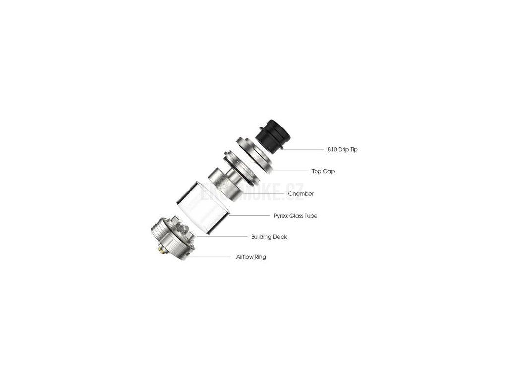 Objem clearomizéru činí 3,5 ml. Díky této kapacitě si poradí také s intenzivnějším používáním a provozem. V případě potřeby je vybaven vrchním systémem plnění. V základním balení najdete také rovné pyrexové tělo, po jehož osazení získáte objem 2 ml. Výběr skla je čistě ve vaší režii, tank podporuje oba dva typy.