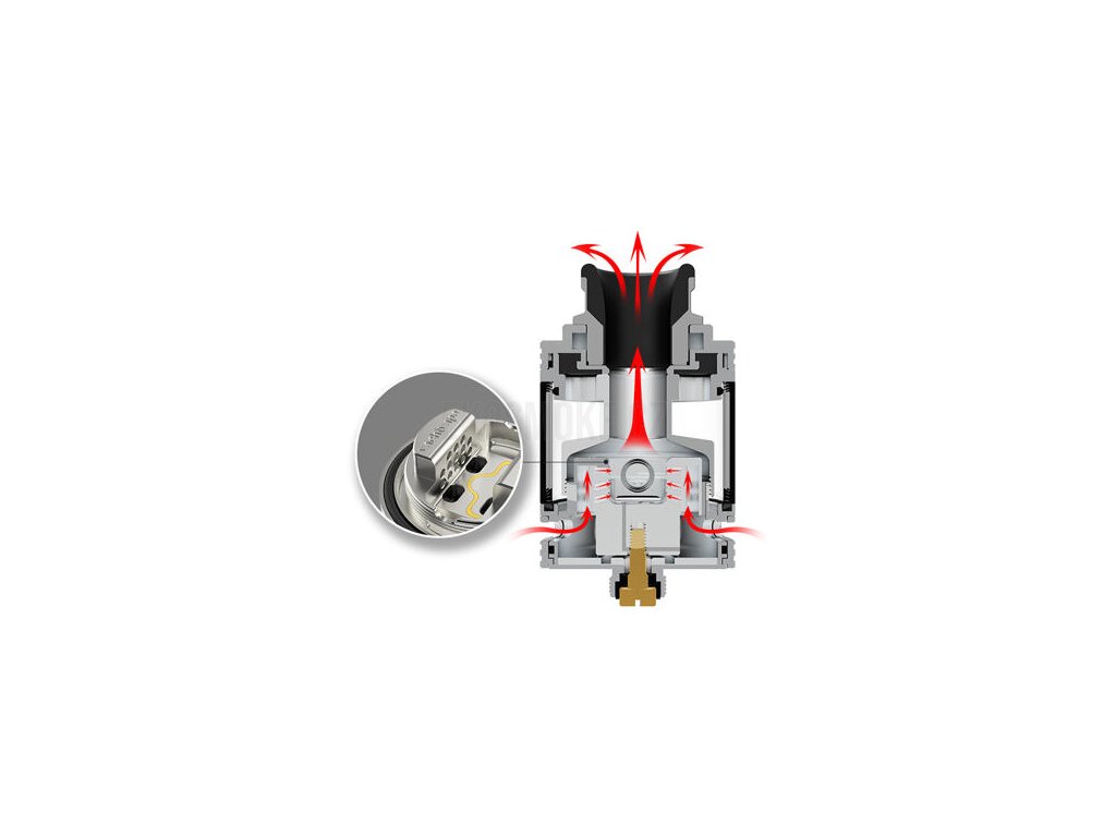 Skvělým funkčním prvkem je přítomnost kratšího tunelu pro vatu. Díky tomu je zajištěno rychlejší zásobení vaty e-liquidem během používání. Tento systém zároveň do značné míry ovlivní také vznik dry hitů, které jsou z velké části eliminovány. S tímto systémem budete mít ve vatě vždy dostatek e-liquidu, dokud nebude potřeba doplnit celý tank.