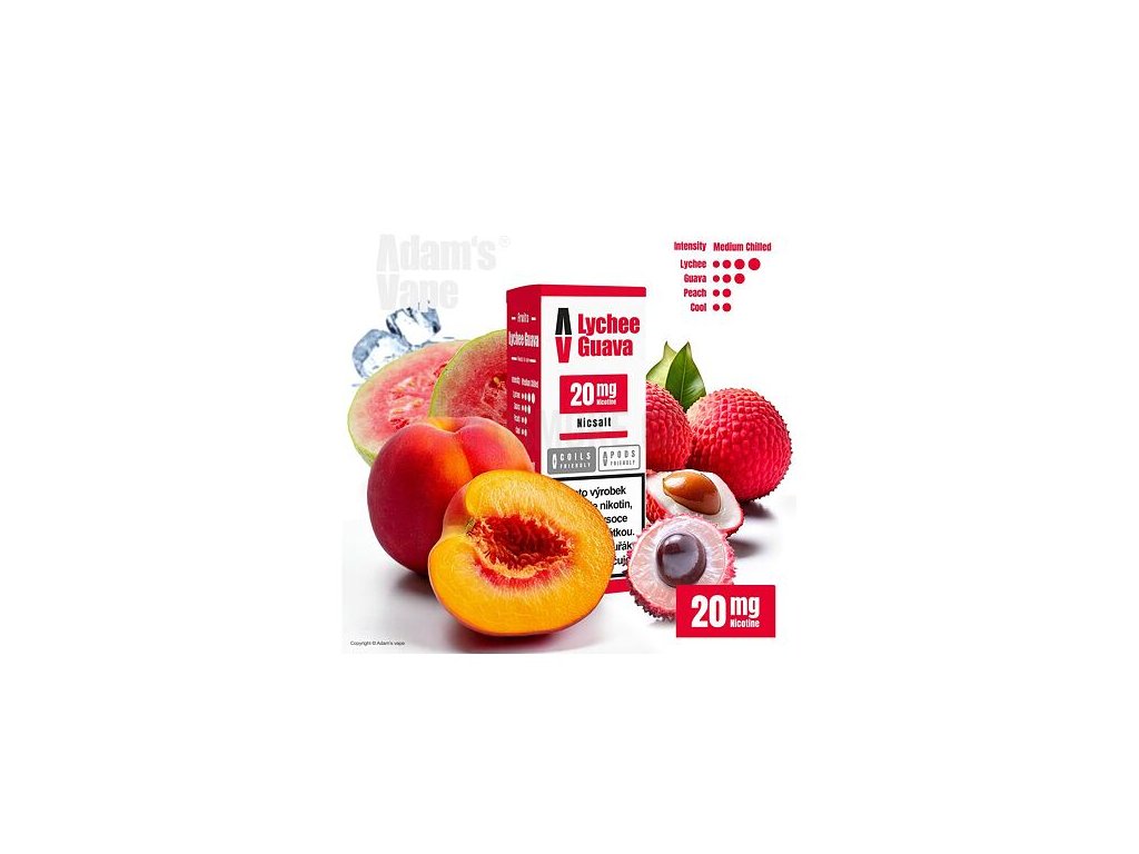 Adam's Vape SALTS Lychee Guava (Liči, guava a broskev) 10ml intenzita nikotinu 10mg tabáková nálepka Kolek Q
