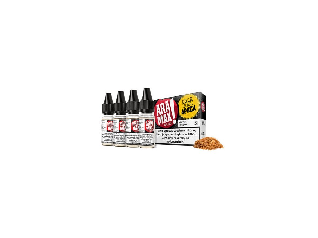 Aramax Classic Tobacco (Klasický tabák) 4x10ml intenzita nikotinu 18mg tabáková nálepka Kolek Q