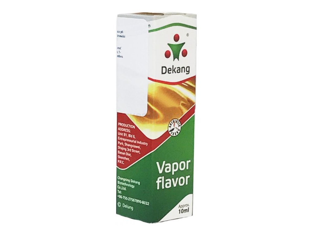 Firma Dekang je největší výrobce e-liquidů na světě a je držitelem osvědčení SGS a dalších. Dekang patří k těm nejkvalitnějším na trhu. E-liquidy Dekang zaručují vysokou dýmivost a skvělou chuť, která je dominantní charakteristikou všech jeho náplní. Dekang substance jsou velmi pečlivě vybírány a neobsahují dehet.
