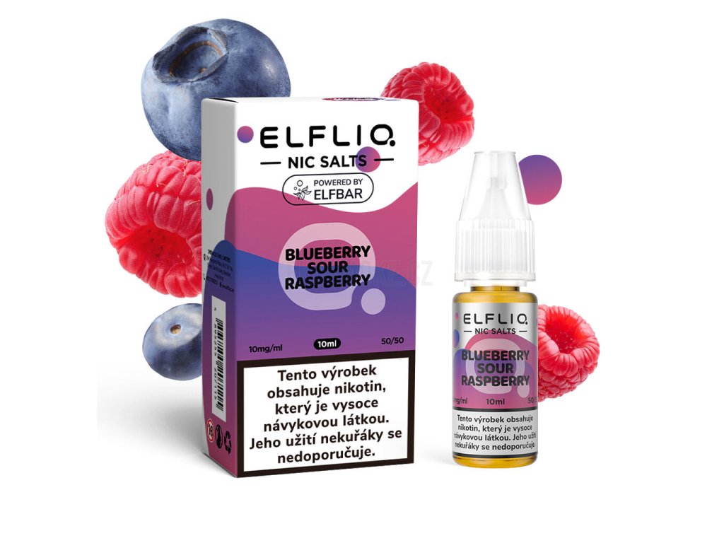 Elfliq Salt Blueberry Sour Raspberry (Borůvka a malina) 10ml intenzita nikotinu 10mg tabáková nálepka Kolek Q