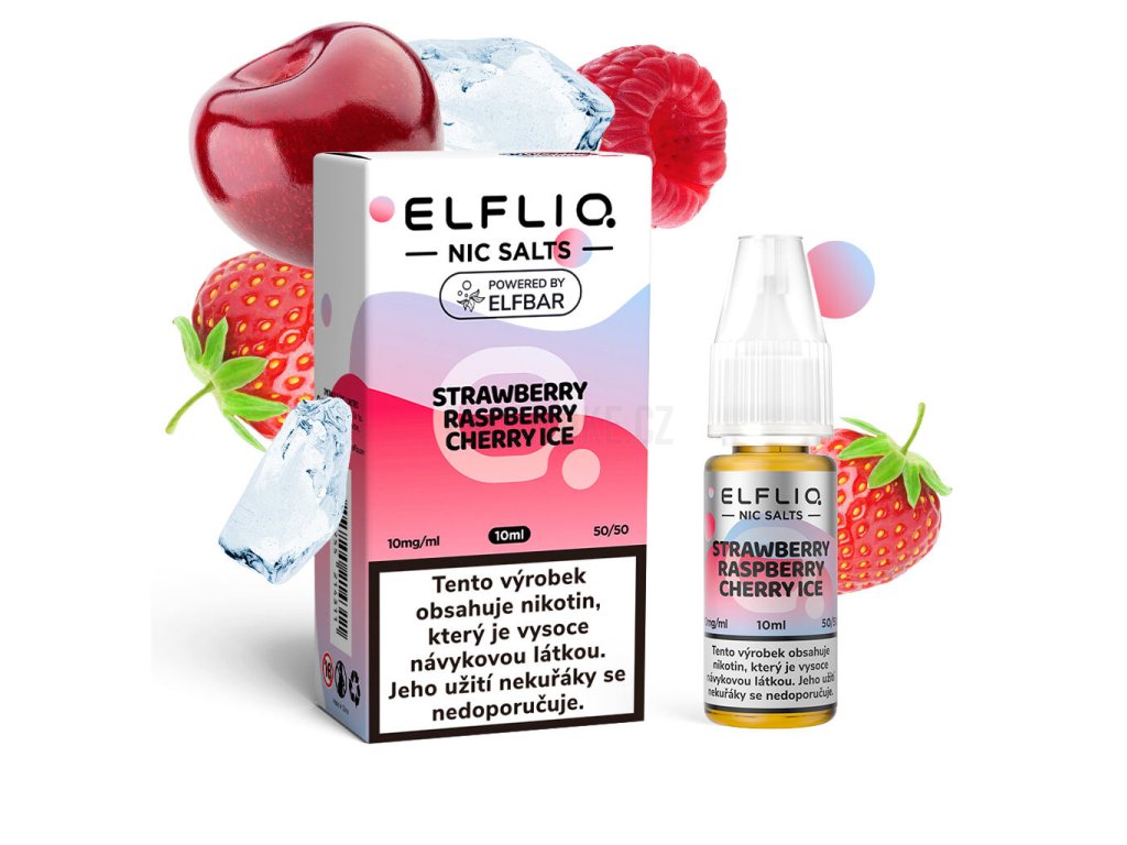 Elfliq Salt Strawberry Raspberry Cherry Ice (Chladivá jahoda s malinou a třešní) 10ml intenzita nikotinu 10mg tabáková nálepka Kolek Q