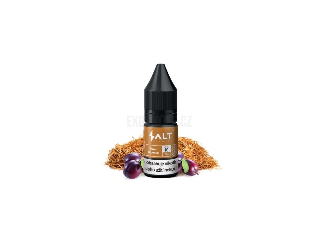 Salt Brew Co Plum Tobacco (Tabák se švestkou a vanilkou) 10ml intenzita nikotinu 20mg tabáková nálepka Kolek Q