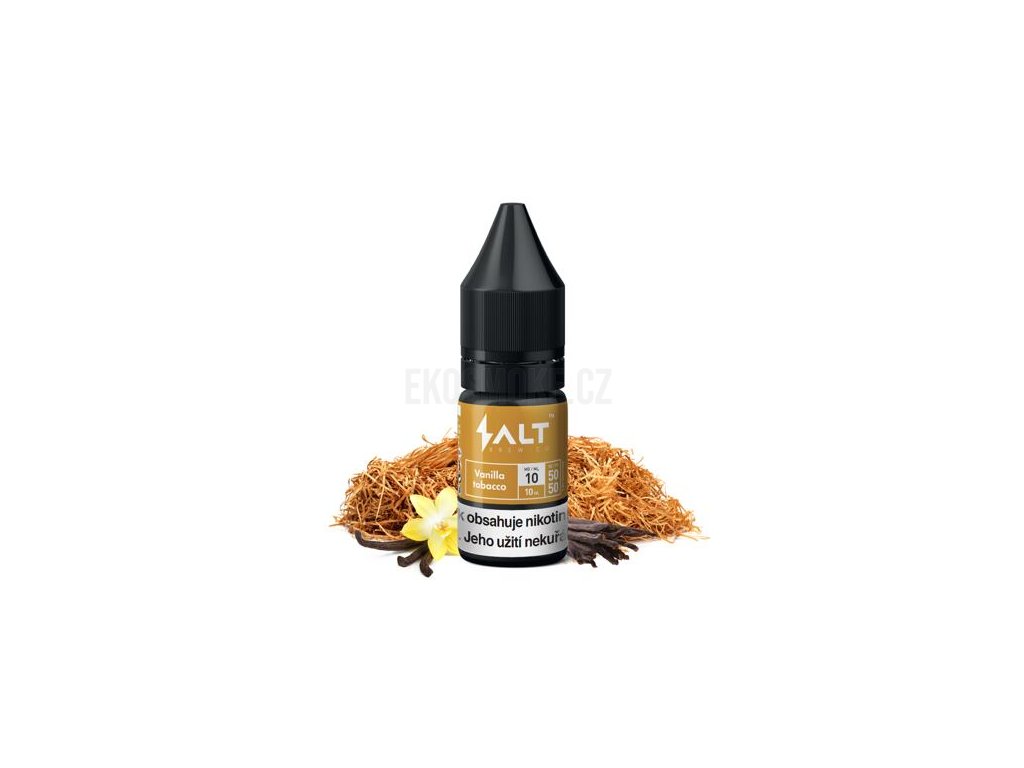 Salt Brew Co Vanilla Tobacco (Tabák s vanilkou a karamelem) 10ml intenzita nikotinu 20mg tabáková nálepka Kolek Q