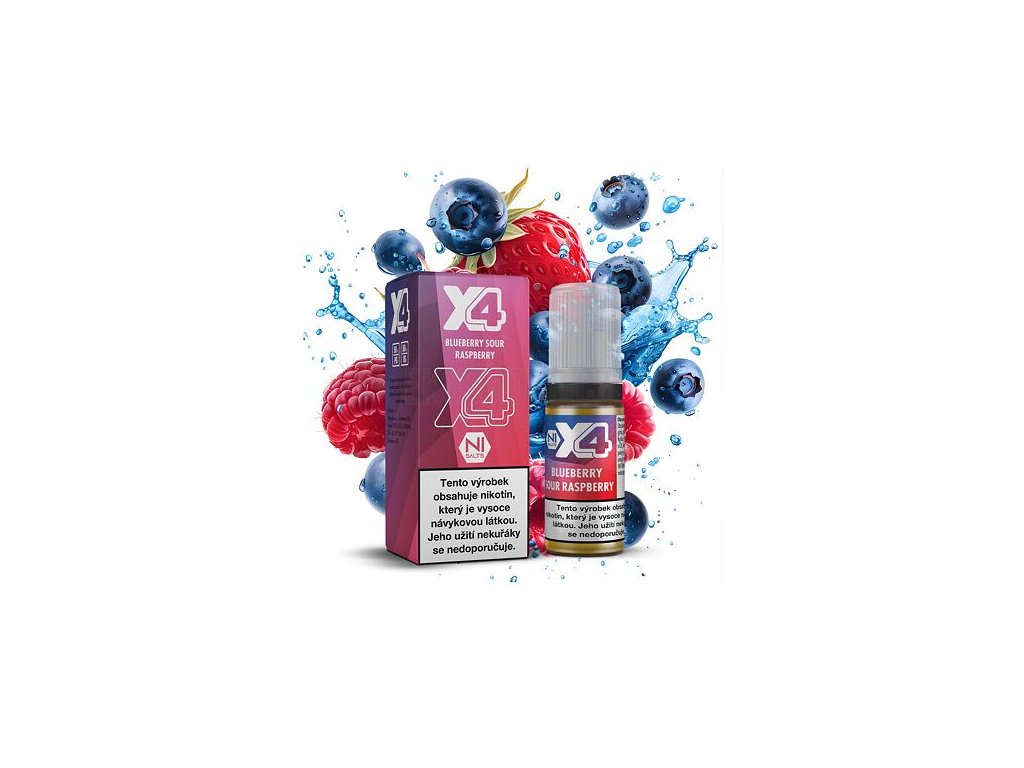 X4 Bar Juice Blueberry Sour Raspberry (Borůvka s malinou) 10ml intenzita nikotinu 10mg tabáková nálepka Kolek R