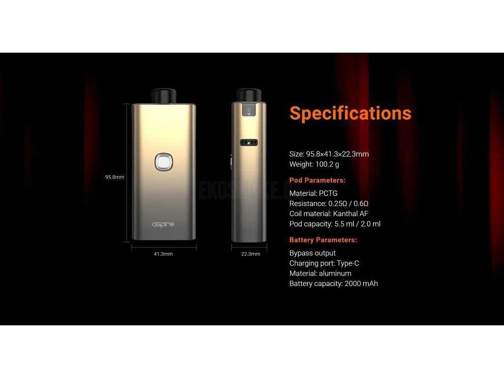 Aspire je jeden z velkých výrobců, který od roku 2013 posouvá dopředu zařízení, ale i způsob vapování. Aspire první představil takzvané BVC hlavy. Aspire se zaměřoval na tyl kouření pusa-plíce, ale jako první přišel s nízkoodporovým tankem. Aspire dále pokračuje na pevných základech. Aspire má pro začátečníky skvělé sady, pokročilí si užijí novou řadu nízkoodporových tanků