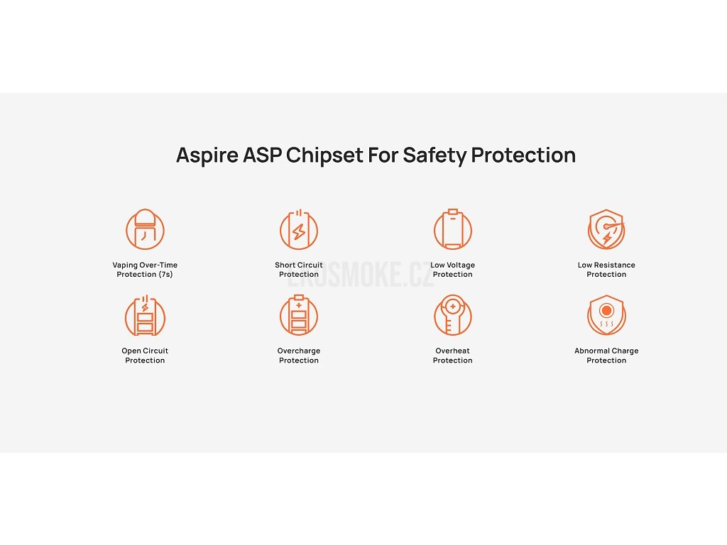 VýkonMaximální výkon 30W s rozsahem 5-30W umožňuje přizpůsobení podle vašich preferencí a použité žhavící hlavy. Aspire čipset zajišťuje spolehlivý a bezpečný provoz s možností automatického nebo manuálního nastavení výkonu pro optimální vapovací zážitek. |