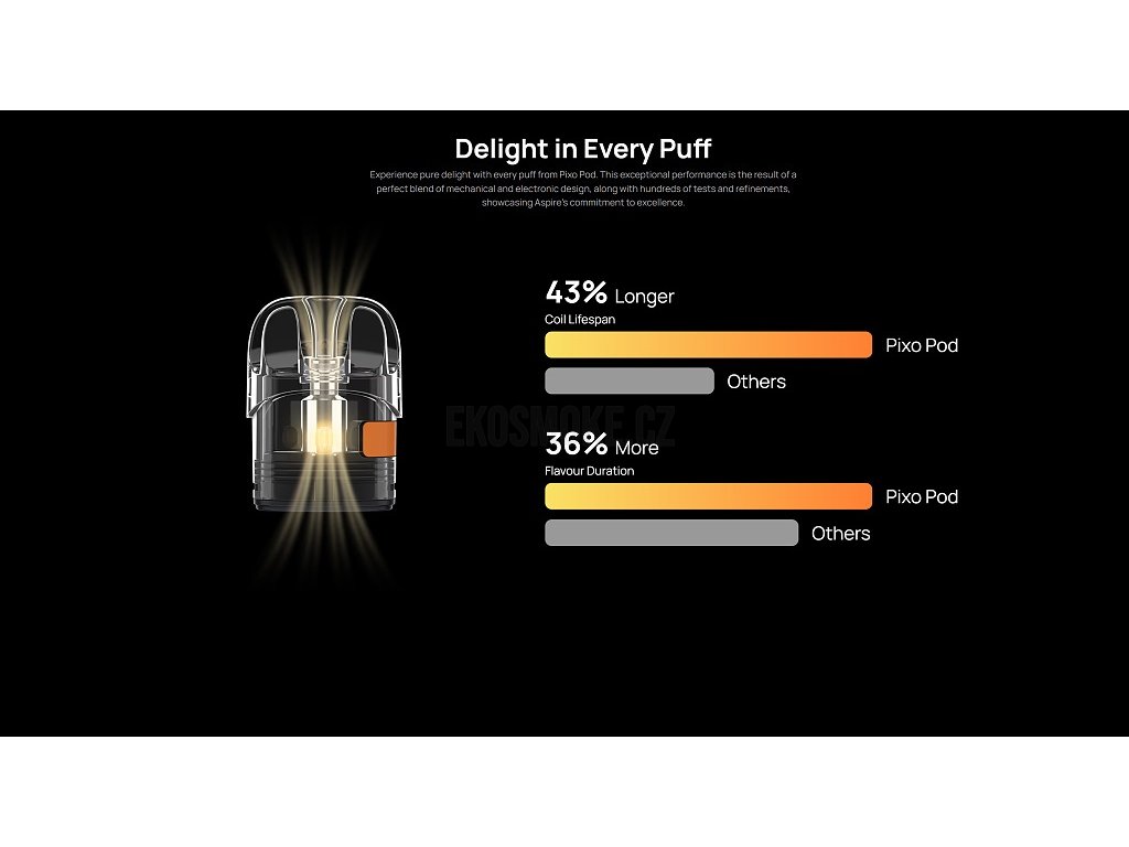 Moderní technologieAspire Pixo Pod představuje vrchol moderních technologií v oblasti elektronických cigaret, kombinující eleganci, inovace a maximální výkon v kompaktním designu. Ideální volba pro uživatele hledající kvalitní a spolehlivé zařízení s pokročilými funkcemi. |