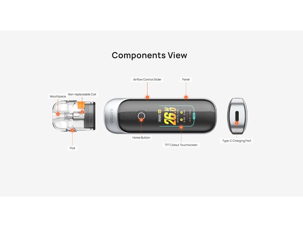 - 1x Tělo Aspire Pixo Pod (integrovaná baterie 1100mAh)