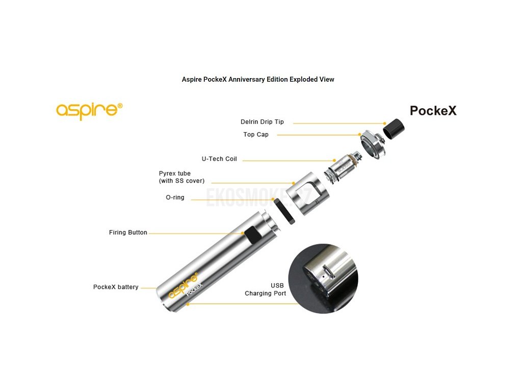 - 1x e-cigareta Aspire PockeX Pocket AIO (Anniversary Edition)