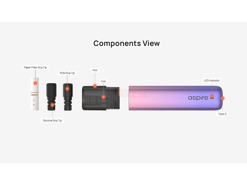 Parametry a specifikaceRozměry: 117,2 x 22 x 12,4 mm Kapacita baterie: 900mAh (integrovaná) Režimy: Bypass Metody spínání potahu: automatické žhavení potahem Výstupní napětí: konstantní 3,4V Podporovaný odpor: 0,8Ω (kompatibilní s 1Ω pody Aspire Vilter) Způsob nabíjení: USB-C port (5V/1A) Regulace výkonu: ne (konstantní napětí) Objem Pod Cartridge: 2ml Styl potahování: MTL (mouth-to-lung), utažený potah Odpor žhavících hlav: 0,8Ω (integrovaná mesh hlava) Regulace přívodu vzduchu (Airflow): ne (přednastaveno) Hmotnost: 34g Barva: Red (Červená) Materiál: kov (tělo), plast (pod) |
