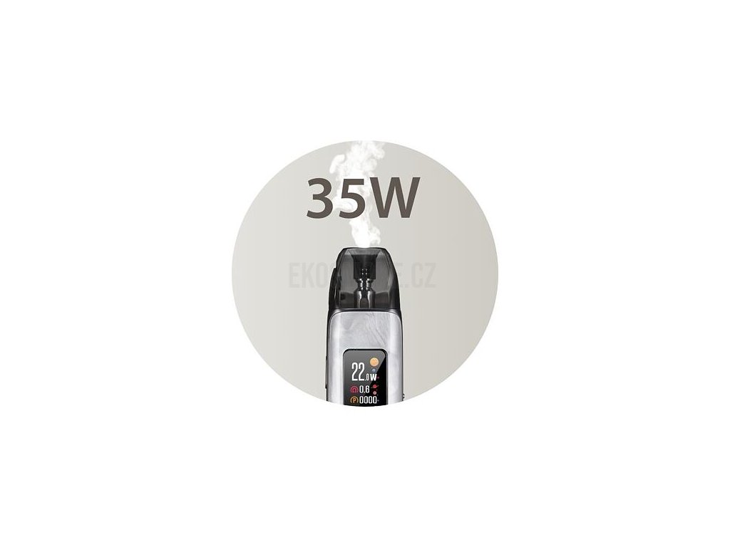 S maximálním výkonem 35 wattů se řadí tato e-cigareta mezi nejvýkonnější zařízení ve své kategorii. Inteligentní elektronika navíc pozná, jaký typ cartridge používáte, a podle toho automaticky nastaví optimální hodnotu. Tu si můžete jednoduchým stiskem tlačítka na boku e-cigarety ještě dále regulovat v daném rozmezí a přizpůsobit si tedy vaperský zážitek přesně podle vašich představ.