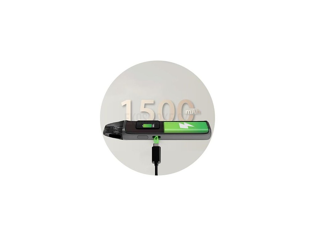 Vysokému výkonu e-cigarety zdatně sekunduje integrovaná 1500mAh baterie. Tato velkorysá kapacita by měla běžnému kuřákovi zaručit celodenní používání bez nutnosti řešit dobíjení. Pokud k tomu přesto dojde, rychlé 2A nabíjení přes rozhraní USB-C vám umožní e-cigaretu bleskové dobít do plné kapacity a pohotově se tak vrátit k vapování.