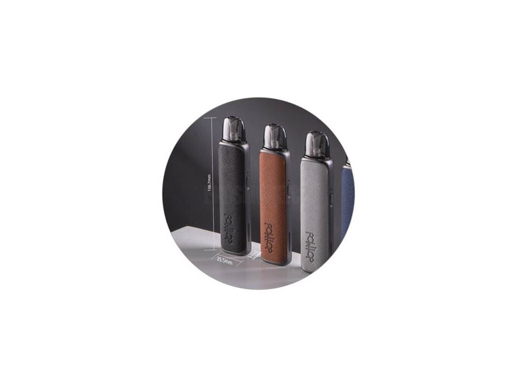 Eleganci a jednoduchost přináší pod systém renomovaného výrobce Dotmod s názvem dotPod S Kit. Luxusně zpracovaný pod pro klasické šlukování dokáže uspokojit i ty nejnáročnější vapery díky prvotřídnímu designu a řadě užitečných funkcí. Rám celého těla je vyroben z kvalitní zinkové slitiny, kterou doprovodí boční kožené panely s texturovaným povrchem. Rozměry celého těla se zastavily na 106,7 x 25,5 x 14,5 mm a díky tradičnímu designu se e-cigareta příjemně drží v dlani a nemá tendenci vykluzovat. Je také nesmírně skladná a s jejím přenášením tak nebudete mít sebemenší problémy. Tělo zařízení v sobě ukrývá integrovanou baterii s kapacitou 800 mAh, která zajistí hladký chod, dlouhou výdrž a stabilní výstupní výkon, jenž dosahuje až 18 W.