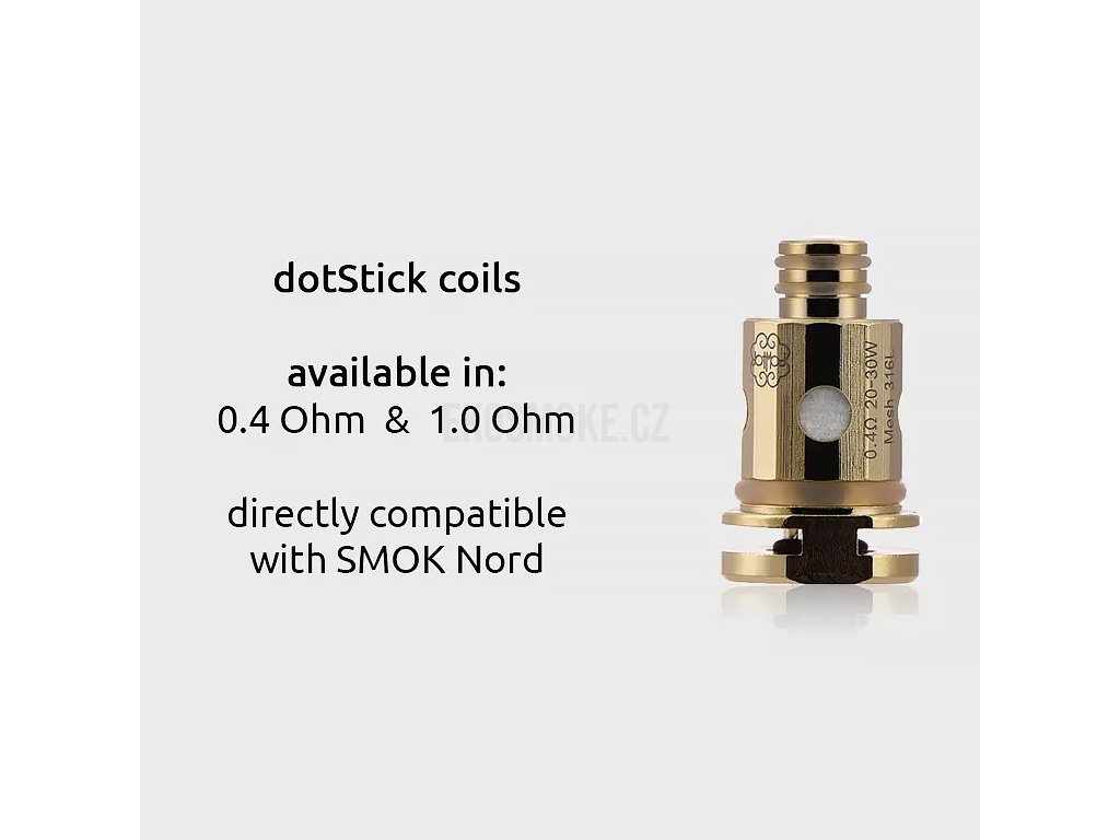 S tímto modelem elektronické cigarety zároveň výrobce přichází se zcela novými žhavícími hlavami se stejným názvem dotStick, které jsou konstrukčně vyrobeny pro oba styly vapování DL i MTL. V tomto setu naleznete obě verze žhavících hlav Dotmod dotStick s odporem 0,4 Ω a 1,0 Ω. Obě tyto hlavy disponují spirálkou v podobě mesh provedení (spirálka v podobě jemného pletiva), které jsou dnes už standardem.