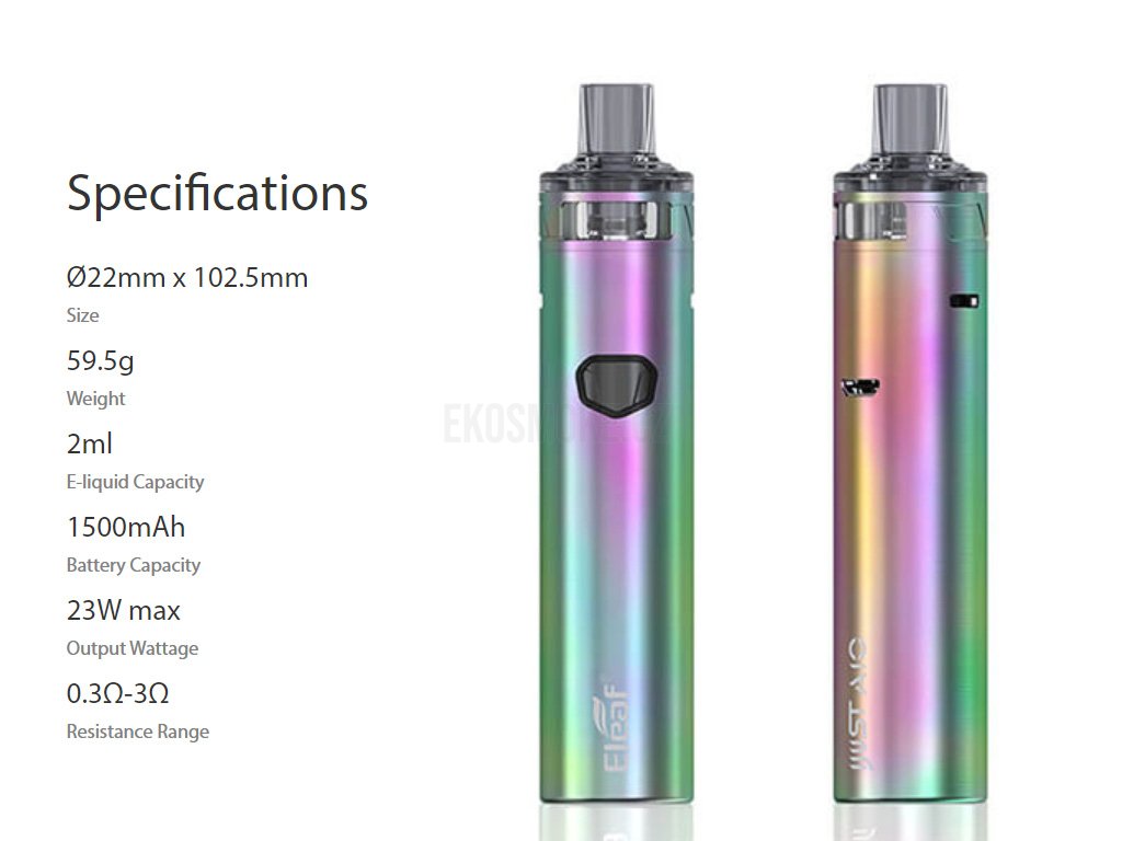 Pod elektronická cigareta, která je velmi vhodná pro MTL styl vapování s dostatečným výkonem 23W a kapacitou baterie 1500mAh. Rozměry 102,5 mm x 22 mm, objem Pod Cartidge 2 ml. Možnost výměny žhavící hlavy. Micro-USB nabíjení.