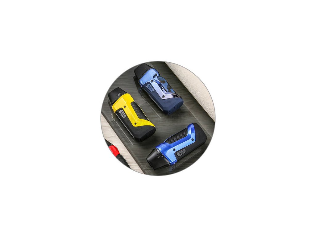 V přední části se nachází praktický displej a v boční části potom jediné ovládací tlačítko. Toto tlačítko slouží pro zapnutí a vypnutí, ale také pro spuštění odpařování a pro nastavení potřebného výkonu. Zařízení pracuje s výkonem v rozsahu 5 - 30 W. E-cigareta Aegis Nano disponuje automatickým rozpoznáním odporu, dle připojené cartridge tak nastaví vhodný doporučený výkon za vás. S e-cigaretou přichází na trh také nové cartridge Aegis Nano. V balení najdete dvě cartridge s integrovaným tělískem a objemem 2 ml. Cartridge nabídnou intuitivní vrchní plnění pouhým sejmutím náustku. Odpor první cartridge činí 0,6 ohm a je určena pro utaženější DL potah. Druhá cartridge s odporem 1,2 ohm je vhodná pro klasické šlukování a použití nikotinových solí. Cartridge drží na těle baterie pomocí silných magnetů. Model je k dostání hned v několika stylových a pestrých barvách.