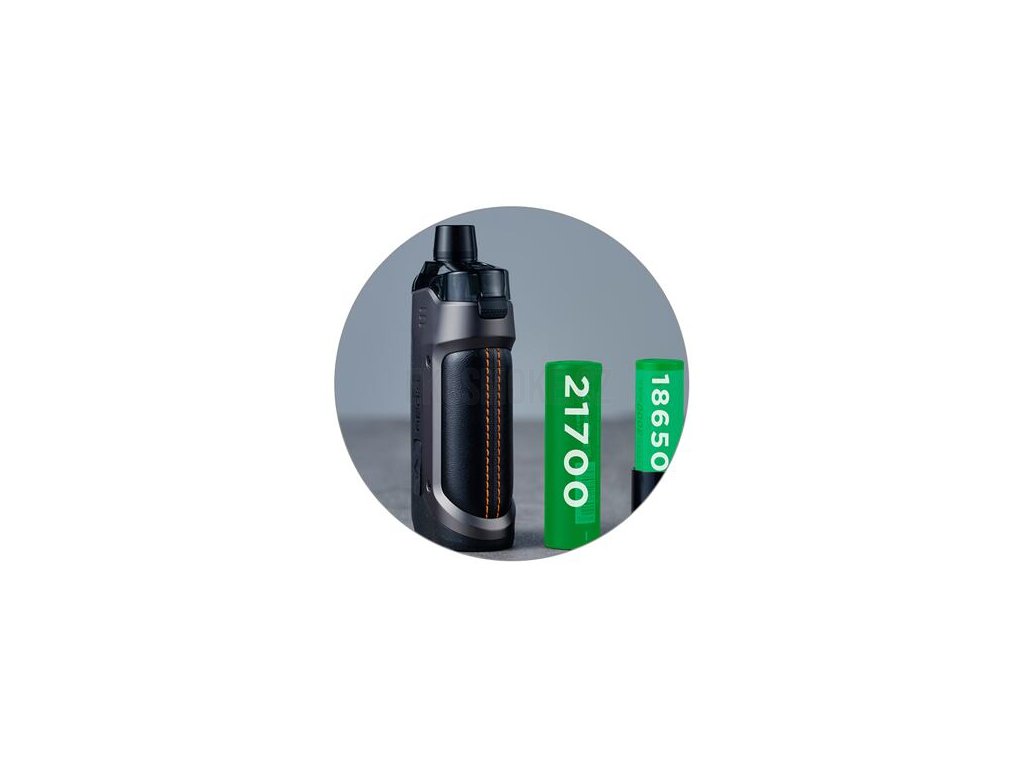Uvnitř těla se nachází slot pro externí baterii typu 21700. Můžete použít také baterii typu 18650 s přiloženým adaptérem v balení. Díky pohonu na vlastní externí baterii si tak můžete sami zvolit vhodnou a odpovídající kapacitu a užívat zařízení dle vlastní potřeby. Samozřejmostí je potom podpora rychlého dobíjení baterie přímo v e-cigaretě díky portu USB-C.