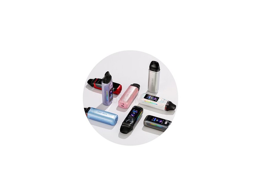 DIGI MAX je nejnovější přírůstek do rodiny e-cigaret renomovaného výrobce GeekVape. Svými parametry se řadí mezi naprostou špičku v POD systémech. Se svou masivní výdrží baterie, velkou kapacitou a rozsáhlými funkcemi je tou správnou volbou, pokud rádi zkoušíte technologické novinky a spokojíte se jen s tím nejlepším. DIGI MAX je vysoce přizpůsobitelný, neuvěřitelně uživatelsky přívětivý, podává vynikající chuť a pohodlně se ovládá díky obrovskému dotykovému displeji. Ať už preferujete jakýkoli styl vapování, tohle je zařízení, které musíte mít!