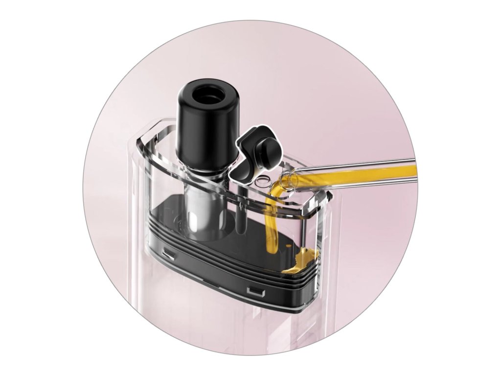 Ve vrchní části se nachází praktický výřez, který slouží pro rychlé zjištění stavu náplně uvnitř cartridge. Ušetříte si tak starost s vyjmutím cartridge z těla pokaždé, když se zrovna chcete ujistit, zda máte dostatek e-liquidu uvnitř. Nyní postačí jeden jediný pohled na průzor a ihned víte, zda je potřeba e-liquid doplnit nebo zda můžete nadále v klidu vapovat.