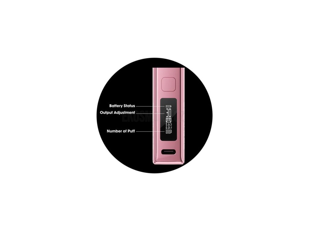 Zařízení GeekVape Soul se pyšní velkým a přehledným displejem pro umocnění zážitku z každodenního využití. Displej zobrazuje aktuální stav baterie, nastavený výstupní výkon, napětí baterie, odpor cartridge a počet potahů. Pomocí tlačítka a displeje si budete moci výkon také pohodlně regulovat. Žádná informace vám neunikne, všechno potřebné máte hezky pohromadě.